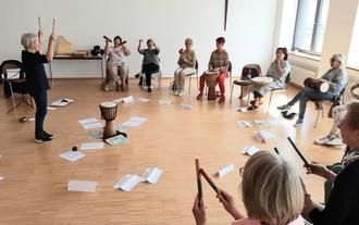 Referentin des Tages, Diplom-Sozialpädagogin und Musikgeragogin Anita Brucherseifer, erläuterte, wie Musik am besten eingesetzt wird. Die experimentierfreudigen Teilnehmerinnen und Teilnehmer hatten Spaß beim Improvisieren und gemeinschaftlichen Singen. So konnten sie an sich selbst dank zahlreicher Praxiselemente die Wirkung von Musik erfahren und eigene Fähigkeiten entdecken. Das reichhaltige Angebot an Instrumenten animierte zum Ausprobieren, Experimentieren und gemeinsamen Spielen. Auch gab die Referentin Tipps zum Selberbauen von einfachen Instrumenten. Die herzliche Aufnahme und gute Verpflegung trugen zum guten und entspannten Klima bei, sodass sich alle wohl fühlten. Ein dickes Lob ging an Anita Brucherseifer, die mit dem Seminar Lust auf mehr Musik machte.