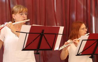 Beatrix Frömbgen (l.) und Andrea Sieger (r.) unterhielten das Publikum mit ihren Querflöten.