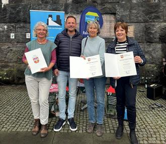 Beim gemeinsamen, fairen Frühstück an den historischen Brückentürmen von Remagen am 27. September wurden drei Frauen von Bürgermeister Björn Ingendahl geehrt, die mit ihrem jahrelangen Einsatz das Leben in der Stadt Remagen entscheidend bereichern: Walburga Greiner, Karin Keelan und Barbara Heimbach.