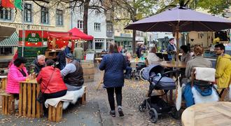 Wie Jürgen Kutter bei einem kleinen Rundgang erläuterte, legte man bei der Auswahl der Anbieter Wert auf Qualität und Abwechslung. Wovon sich viele auch gerne überzeugten und sich mit ihren Speisen im großen Rund vor dem Rathaus stärkten.