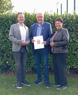 Die Stadt würdigt das große ehrenamtliche und soziale Engagement von Eduard Krahe mit einer offiziellen Ehrung. Anwesend war dabei auch Doris Krahe, die Ehefrau des Geehrten. Bürgermeister Björn Ingendahl überreichte die Auszeichnung bei einer kleinen Feierstunde.