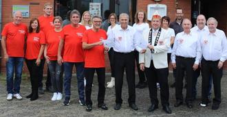Senat, Vorstand und Prinz mit Hofstaat freuten sich über den großzügigen Geldbetrag aus der Senatskasse: Werner Kriechel, Bianca Laudien, Volker Schwarz, Ilka Simons, Wolfgang Seidler, Sabrina Simons, Wolfgang Knopp, Daniela Krahforst, Dieter Holstein, Sarah Bungard, Michael Meyer, Bianka Meyer, Benedikt Balasus, Detlef Schmitt, Jürgen Meyer und Rudi Dick (v. l.)