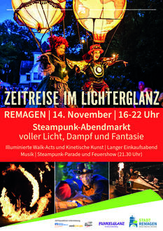 Walk-Acts in Form von dampfenden Maschinen, mechanischen Wesen und fantasievollen Figuren auf Stelzen sorgen für Staunen und einzigartige Fotomotive. Dazu öffnen die Remagener Geschäfte und Restaurants bis in den Abend und bieten Aktionen und Kostproben an. Ein weiteres Highlight ist die kinetische Kunstmaschine „Idiophonie“ des Künstlers Willi Reiche, die Mechanik, Klang und Bewegung auf eindrucksvolle Weise verbindet.