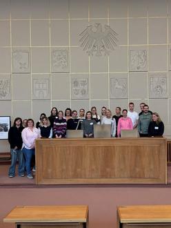 Der Tag begann mit einem gemeinsamen Frühstück und einer aktiven Kennenlern-Runde, bevor sich die Gruppe gemeinsam mit dem Zug auf den Weg nach Bonn machte. Dort stand zunächst der Besuch des Bundesrats auf dem Programm. In einer interaktiven Ausstellung rund um das Grundgesetz sowie einem begleitenden Workshop zur politischen Bildung erhielten die Teilnehmenden spannende Einblicke in demokratische Entscheidungsprozesse und diskutierten die Bedeutung von Mitbestimmung und Verantwortung in Staat und Gesellschaft.