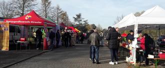Besucher der Kundgebung kamen auf der Info-Meile ins Gespräch