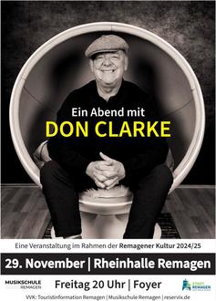 Für die Veranstaltung mit Don Clarke sind Eintrittskarten zum Preis von 27,- Euro (ermäßigt 24,- Euro) bei der Touristinformation Remagen oder online unter www.reservix.de erhältlich. Restkarten können je nach Verfügbarkeit auch an der Abendkasse erworben werden.