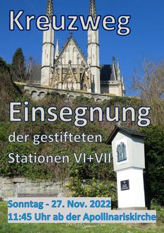 Die Einsegnung der neuen Station findet am 27. November um 11:45 Uhr nach der Sonntagsmesse statt. Treffpunkt ist das Hauptportal der Apollinariskirche. Der Tenor könnte lauten: „Wir wollen nicht kapitulieren. Nicht vor Metalldieben und auch nicht vor der Aufgabe der Erhaltung dieses christlichen und kulturellen Denkmals in Remagen. Ein Blick in die 150-jährige Geschichte zeigt, dass die Erhaltung eines solches Objektes, das jeden Tag Sonne und Regen sowie den Menschen ausgesetzt ist, eine immerwährende Aufgabe ist.“