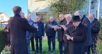 Die Chorgemeinschaft MGV Concordia Fritzdorf und MGV Cäcilia Oedingen singt am Ehrendenkmal