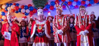 Nach der feierlichen Proklamation gab es zahlreiche Gratulanten, darunter Ortsvorsteher Axel Blumenstein, zahlreichen Ortsvereinen, befreundeten Karnevalsgesellschaften und Gasttollitäten, die dem neuen Dreigestirn ihre Aufwartung machten.