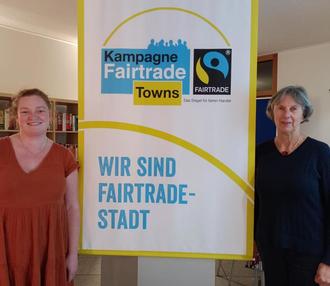Lisa Althoff vom Stadtmarketing Remagen und Walburga Greiner als Sprecherin der Steuerungsgruppe und des Remagener Eine-Welt-Ladens kamen zu Besuch