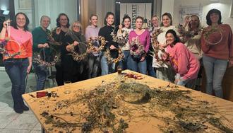 Strahlende Gesichter und stolze Kreationen: Teilnehmerinnen präsentieren vollendete Trockenblumen-Werkstücke