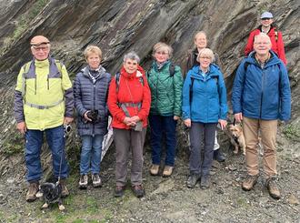 Die Mitglieder des Eifelvereins an einer Felspfad an der Nette.