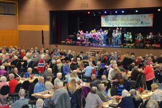 Trotz schlechten Wetters folgten rund 400 über 75-jährige Bürgerinnen und Bürger der Einladung der Stadt Remagen zum diesjährigen „Goldenen Nachmittag“. Sie genossen einen unterhaltsamen Nachmittag in der Rheinhalle mit leckerem Kuchen, fair gehandeltem „Remagener Stadtkaffee“ und kühlen Getränken.