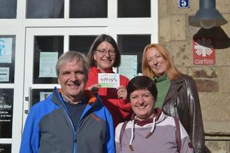 (Von links) Wilfried Braun, Nicole Piclum, Michaela Braun und Ute Retterath tauschten sich über das Caritas-Lernpatenprojekt aus. Sie fanden, dass es weitere Mitstreiter braucht, die Kinder im ersten Schuljahr begleiten.