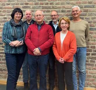 Der neue Vorstand: Ulrike Bäumler, Michael Heithausen,Werner Rex, Pfr. Friedemann Bach, Susanne Müller, Hermann Efferz (v.l.). Es fehlt: Marita Falk-Solheid