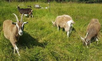 Die vier Ziegen des Beweidungsprojekts.