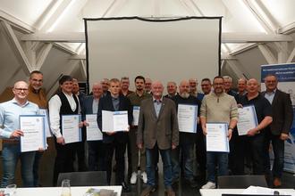 Für das Jahr 2023 geehrt wurden Elektrotechniker Frank Degen (Niederzissen), Elektroinstallateur Werner Gies (Grafschaft), Maurer Guido Nett (Herschbroich), die Tischler Stephan Kindler (Bad Breisig) und Harald Neukirchen (Bad Neuenahr-Ahrweiler), Installateur Karsten Seidel (Sinzig), die Kfz-Mechaniker Alfred Huther (Bad Neuenahr-Ahrweiler) und Marcel Konrad (Sinzig) sowie Metallbauer Volker Kloss (Kaltenborn).