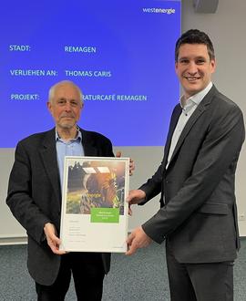 Der Westenergie Klimaschutzpreis steht ganz im Zeichen des Natur- und Umweltschutzes. Der Preis, den die Westenergie AG gemeinsam mit den Partnerkommunen verleiht, geht an örtliche Vereine, Organisationen oder Personen, die sich beim Thema Klimaschutz besonders verdient gemacht haben. Im Landkreis Ahrweiler wurden in diesem Jahr sechs Preisträger*innen aus den Städten Remagen und Sinzig sowie den Verbandsgemeinden Altenahr und Brohltal ausgezeichnet. Fabian Vocktmann, Regionalmanager von Westenergie, überreichte die Urkunden gemeinsam mit den Vertreter*innen der Kommunen. Die Initiativen wurden mit einem Preisgeld in Summe von 2.500 Euro belohnt.