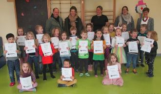 Die starken "Löwenkinder" mit ihren Urkunden.