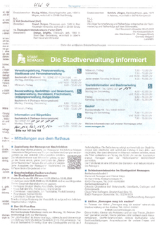 Die Stadtverwaltung bittet um Änderung in der ersten Spalte unter der Überschrift in blau „Information und Bürgerbüro“
