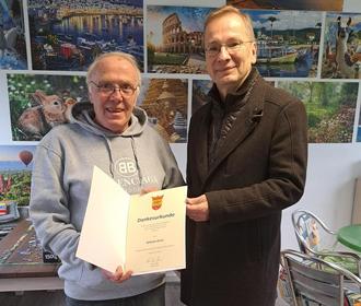 Willi Ehret (l.) wurde von Sinzigs Bürgermeister Andreas Geron für sein ehrenamtliches Engagement in der Begegnungsstätte in Bad Bodendorf geehrt.