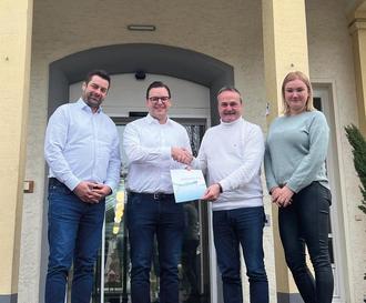 Sie haben eine wegweisende Kooperation getroffen. Die Römer-Thermen in Bad Breisig und der Brohler Mineralbrunnen. (v.l.) Der Marketing Leiter des Brohler Mineralbrunnens, Thorsten Huber, David Schilling, Geschäftsführer des Brohler Mineralbrunnens, Bernd Schmitz, Geschäftsführer der Römer-Thermen und Dace Schlich, Asisstenz der Geschäftsführung der Römer Thermen.