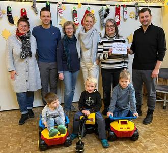 Die Kita Max hat sich von der willkommenen Zuwendung verschiedene Baufahrzeuge gekauft, auch die Kita Moritz wird in neue Spielgeräte und pädagogisches Material investieren, um so den Kindern neue Lern- und Spielmöglichkeiten zu bieten. Die beiden Leitungen der Kitas Biggi Geef und Daniel Odenwald sowie der Vorsitzende des Fördervereins der Kitas Stefan Strohe zeigten sich begeistert von dieser Initiative, die den Kindern zugutekommt. Bei dieser Gelegenheit bedankte sich Mutabor ausdrücklich bei Herrn Odenwald, denn die Turnhalle der Kita Moritz dient der Theatergruppe schon seit Jahrzehnten als Probe- und Spielstätte, was für die Kinder und Erzieher*innen auch mit Rücksichtnahme und Einschränkungen verbunden ist.