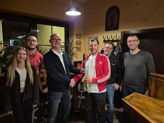 NIEDERLÜTZINGEN. Nach 25 Jahren im Amt wurde der ehemalige Kommandant Volker Wolf gebührend durch die Stadtsoldaten und den Rheinische Karnevals-Kooperationen e. V. (RKK) auf beiden Kostümsitzungen verabschiedet. Er erhielt den goldenen Verdienstorden für seine langjährige Arbeit. Dafür dankt auch die KG Blau-Weiß Niederlützingen e. V. nochmals recht herzlich. Beim traditionellen Abschlussessen am vergangenen Freitag wurde dann ein neuer Kommandant gewählt. Nachdem sich alle mit leckerem Essen gestärkt hatten, ging es zur Wahl. Die Stadtsoldaten wählten Kim Theurer zu ihrem neuen Oberhaupt und wünschten ihm alles Gute für sein neues Amt. Lars Fuchs bleibt der stellvertretende Kommandant und unterstützt somit weiterhin die ganze Gruppe. Nun kann sich der neue Kommandant Kim Theurer in Ruhe auf sein Amt vorbereiten und dann in die neue Session 2025/2026 starten. Die KG Blau-Weiß Niederlützingen e. V. gratuliert herzlich und wünscht viel Spaß mit der neuen Aufgabe.