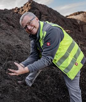 cREATIVE mOMENTS - Stephan Müllers, Technischer Leiter des AWB, hält den neuen Frischekompost bereits in seinen Händen.