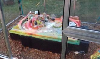 Czapla und Feix dankten allen, die Anteil an der Umsetzung des Projektes “RheinFunken“ haben: den Künstler*innen, den Geldgebern (u.a. Stiftung Sozio-Kultur, Stiftung Kerpen, Landkreis Ahrweiler, KSK Ahrweiler, Voba RheinAhrEifel, Lotto RLP), der Stadt Bad Breisig (Freigabe des Areals), dem städt. Bauhof (Aufbauhilfe) und der Fa KGT (Überlassung des Glashauses). Eröffnet wurde die Ausstellung und das bürgerbeteiligte gemeinsame Kunstprojekt des Kulturvereins BREISIG.live und der Bad Breisiger Karnevalsgesellschaft "Mir lossen ohs net bang maache“ unter dem Motto “Glashaus-Kultur im Kurpark“. Und darin ist gleich zu Beginn die Installation “Die Heimat als Fremde“ zu bewundern, eine Miniaturlandschaft der Künstlergruppe “eurape.org“ aus Stuttgart. Das Modell erstrahlt in bunten, kräftigen Farben, Glänzende silberne Kugeln sind Landmarken inmitten einer psychedelisch-expressionistischen Farbwelt und der Natur. Von Solarlampen beleuchtet wird in dieser Szenerie wie in einem Science-Fiction-Roman die Landschaft zum Star der Handlung. Über allem erklingt entfernt das Breisiger Heimatlied, eine von Gästen im Herbst 2022 frei interpretierte Version des Liedes “Breisig, Breisig, kleine Perle hier am Rhein“ von Dr. Dirk Pollerberg. Die Visuals stammen von Julia Wenz-Delaminsky und Peter Franck-Oberaspach, der Sound von Christian Eickhoff. Damit bewegen sich die Künstler stets in einem Spannungsbogen zu dem, was die bürgerliche Gesellschaft vermeintlich als Kunst erachtet. Die scheinbare Einfachheit des Modells begegnet hier einem komplexen, emotionalem Thema: Was ist Heimat für mich? Dies führt zu Diskussionen, wie es bereits während der Vernissage deutlich wurde. Damit erfüllen sich Ziel und Hoffnung der Künstler und Veranstalter: Austausch und Anregung zwischen den Bürgern zum Thema “Heimat“. Dass dies gelungen ist bewiesen die Besucher, die mit einem Ohrwurm den Heinweg antraten. “Breisig, Breisig“ sang oder summte so mancher, der aufbrach.