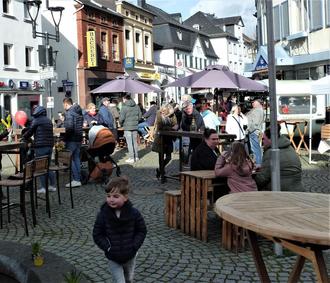 SINZIG. DG. Unter dem Motto „Sinzig blüht auf“ erwachte am vergangenen Wochenende in der Innenstadt der Frühling. Allerdings zeigte er sich noch etwas launisch, denn insbesondere am Sonntag vermieste kühles Schauerwetter doch etwas den Besuch. Besonders hatte darunter der Kinderfloh- und Trödelmarkt auf dem Kirchplatz gelitten -der fiel nämlich ganz aus. Nach Karneval war es das erste größere Event, dass die Aktivgemeinschaft in diesem Jahr auf die Beine gestellt hatte. Auf dem Marktplatz und entlang der Bachovenstraße wechselten sich viele Stände mit ganz unterschiedlichen Angeboten ab. Da gab es Blumen und allerlei schönes Zubehör. Wer Anregungen für einen neuen Gartenzaun brauchte, auch dem konnte geholfen werden. Die duftenden Kräuter waren schon einige Meter vorher zu vernehmen, und an einem Stand gab es allerlei rund um den Honig. Die örtlichen Geschäfte hatten natürlich auch geöffnet. Ein Auto-Fahrsimulator faszinierte insbesondere die jüngeren Besucher. Und die ganz Kleinen konnten mit der Mini-Eisenbahn einige Runden drehen. Sonntags war dann auch noch Kinderschminken angesagt. Natürlich war auch für das leibliche Wohl bestens gesorgt. Immer einen Besuch wert war die große Schaubühne gleich am Anfang auf dem Markt. Ob nur Begleitmusik vom Band oder Liveauftritte, hier war immer was los: Die Saxophonisten und DJane Kati Monta, die Fiesta Poets, Philipp Bender oder B. and M., hier war für jeden Musikgeschmack etwas dabei. Und sonntags hatte die Kinderband mit Pia und Nino einiges für die Pänz im Angebot, bei dem ordentliches Mitmachen angesagt war. Ein schöner Auftakt der Sinziger Veranstaltungen, auch wenn das Wetter nicht ganz so frühlingshaft mitspielen wollte.