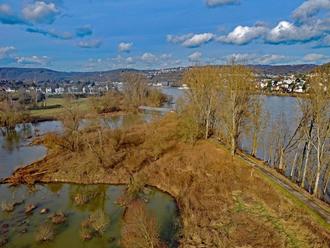 Das Ahr-Mündungsgebiet mit der provisorischen Brücke.