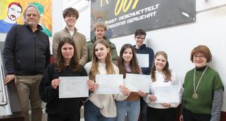Das Rhein-Gymnasium gratuliert Oskar Buchmüller und Nils Köning zur bestandenen A2-Prüfung für die 9. und 10. Klasse, Carla Kaltz, Johannes Karlein und Leonie Seul zum Prüfungserfolg auf Niveaustufe B1 für die Oberstufe sowie Julie Kesseler, Anaïs Klein und Hannah Uhrmacher zur bestandenen B2-Prüfung auf Abiturniveau.