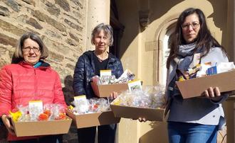 ALTENAHR /REMAGEN. In der Karwoche überreichten Silke Olesen und Walburga Greiner faire Schokoladen-Osterhasen und -Osterlämmer sowie Osterdeko und Kaffee an Stefanie Marhöfer, Sekretärin der Pfarreiengemeinschaft Altenahr. Diese Aktion wurden aus Spenden des Weltladens und des Faireins Remagen e.V. finanziert. Die fairen Ostergrüße werden in den kommenden Tagen an Kinder und Senioren in der von der Flut so hart getroffenen Gemeinde verteilt.