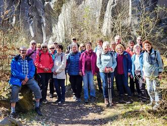 SINZIG. Die feurige Vergangenheit unserer Heimat lockte 21 Wanderinnen und Wanderer des Eifelvereins Sinzig nach Ettringen. Sie erkundeten, geführt von Änne Wichterich, den dortigen Vulkanpfad. Dieser Traumpfad erwies sich als abwechslungsreiche und beeindruckende Wandertour. Bereits nach dem ersten Aufstieg zum Gipfel „Bellerberg“ boten sich schöne weite Aussichten. Auf urigen Pfaden und Stufen ging es dann durch den Wald und schließlich, nach einem weiteren Aufstieg, am Kamm des Kraters entlang. Auch hier genoss man wieder herrliche Aussichten auf die umliegenden Berge Hochsimmer, Hochstein und Sulzbusch. Ebenso bot sich ein grandioser Einblick hinab in einen großen Steinbruch. Hier wird immer noch Basalt abgebaut. Nach Überquerung der Landstraße erreichte die Gruppe das „Kottenheimer Winfeld“. Es stellte den Höhepunkt der Wanderung dar. Hoch empor ragen mächtige Basaltfelsen. Sie bilden eine spektakuläre Kulisse und sind heute ein Kletterparadies für Hobby-Kletterer. Weiter führte der Wanderweg vorbei am Felsendenkmal „Junker Schilling“ und dem Mineralbrunnen „Hartborn“. Bald gelangte die Wandergruppe wieder zum Ausgangspunkt in Ettringen. Die Sinziger Wanderfreunde waren begeistert von dieser abwechslungsreichen Landschaft, die so viele Einsichten in den Vulkanismus in unserer Heimat bot. Bei der anschließenden Einkehr ließ man wieder einen schönen Wandertag mit Kaffee und Kuchen ausklingen. Wenn Interesse besteht, können Gäste gerne an den Wanderungen des Eifelvereins Sinzig teilnehmen, wir freuen uns. Informieren sie sich über unser Wanderprogramm unter www.ev-sinzig.de.
