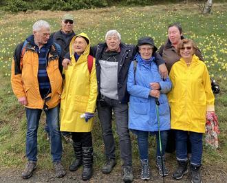 Freudig stellte man fest, dass sich die dicke Nebelschicht erheblich verringert hatte. Die Wanderung begann über einen schmalen Waldweg bis zum Abzweig Furthbachtal. Nach einem leichten Anstieg tauchten die erste Narzissenwiese auf. Die zahlreichen Blumen standen allerdings noch nicht in voller Blüte. Ihnen fehlten noch Sonnenstunden.