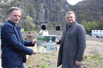AHRTAL. Schneller, sauberer, serviceorientierter - so soll die Ahrtalbahn Ende 2025 wieder auf die Schiene zwischen Remagen und Ahrbrück zurückkehren. Das versprachen jetzt Stefan Gleißner, Leiter des Wiederaufbaus der Deutschen Bahn in Rheinland-Pfalz, und Christian Sauer als Leiter des Wiederaufbaues der DB Netz AG im Ahrtal. Am Altenahrer Bahnhof stelllten die beiden DB-Mitarbeiter die konkreten Pläne für den Aufbau der von der Naturkatastrophe im Juli 2021 zerstörten Strecke vor,