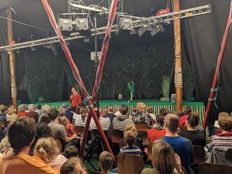 In dem historischen Zirkuszelt haben bis zu 250 Personen Platz. Es wird von zwei Masten gestützt, hat einen Durchmesser von 18 Metern und ist 6,50 Meter hoch.