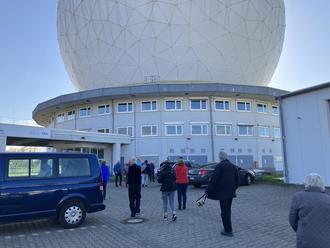 Das nächste Ziel war das Fraunhofer Institut in Wachtberg. Schon immer einmal wollte man wissen, was sich in der großen weißen Kugel befindet, die man von weit her sehen auch schon auf etlichen Wanderungen in den Blick kam. Nach einer Einführung in die Arbeit des Institutes, das weltweit arbeitet, wurde erklärt, in welchen Themenbereichen mit der Radartechnik gearbeitet werden kann: So etwa vom Landwirt, der für seine Agrarwirtschaft Auskünfte braucht, oder in der Stahlindustrie, wenn es darum geht, exakte Stahlplatten auszurollen und natürlich im Weltraum. Einzigartig ist dieses Institut und die Arbeitsfelder äußerst spannend. Und dann ging es natürlich in die Kugel, staunend über die Größe und die Umfänge standen die Besucher fasziniert in ihr. Fragen wurden gern beantwortet. Toll, dass es mit dem Besuch klappte, denn alle Termin für 2023 sind schon ausgebucht.