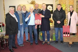 Bürgermeister Andreas Geron (3.v.r.) und Oliver Göbel (2.v.r.) brachten den Kunsthandwerker*innen offizielle Begrüßungsgeschenke der Stadt Sinzig.