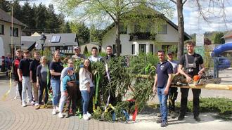 Die Stadtsoldaten Gönnersdorf stellten am 30. April einen stattlichen Maibaum auf dem Dorfplatz auf.