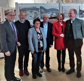 Von links nach rechts: Verbandsbürgermeister der VG Burgbrohl Johannes Bell, 1. Vors. Brohler Kulturverein Helmut Rosenbaum, Müllerehepaar Rita und Rainer Mosen, Ehepaar Marie Antoniette Gräfin von Ingelheim und Baron Karl Theodor Freiherr von Geyr zu Schweppenburg.