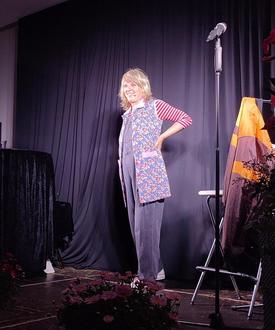 Direkt zu Beginn der Veranstaltung gab Korthaus ihr Motto mit einem Song zum Besten: „Sorgen? Mache ich mir morgen!“. In fliegendem Wechsel schlüpfte sie anschließend in verschiedene Rollen. So teilten beispielsweise die tabulose Oma Emmi oder Friseurin Biggi ihre Alltagsgeschichten mit den Zuschauern, welche begeistert waren von der vielfältigen Darstellungskunst die Korthaus auf die Bühne brachte.