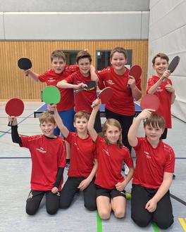 Sie haben den Meistertitel verteidigt. Der U13 Tischtennisnachwuchs des SC Niederzissen (v.l.): Linus Funk, Oskar Schwarz, Jasper Horn, Finn Kardeis, Matthis Weiden, Emil Schwarz, Antonio Hepper, Julian Henning.