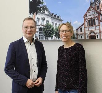 Bürgermeister Andreas Geron (l.) begrüßte Sozialraumkoordinatorin Sonja Wuttke im Rathaus.