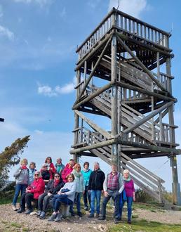 Ein Teil der Wandergruppe am Aussichtsturm Weiselstein.