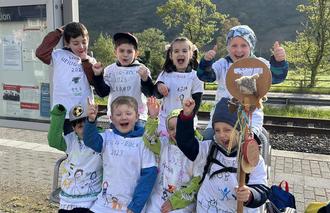 Die Kindergartenkinder auf dem Weg nach Trier.
