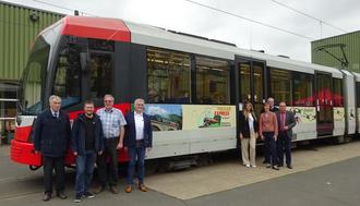 Vertreter von Brohltalbahn und Vulkanregion Laacher See schickten die neue Werbebahn am 23. Mai symbolisch auf die Reise.