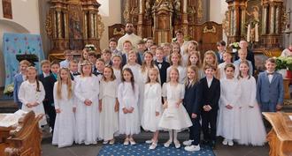 NIEDERBREISIG. Ein bedeutender Moment im Leben von 41 Kindern der Pfarrei Heilig Kreuz im Breisiger Land: Sie haben das Sakrament der ersten Heiligen Kommunion empfangen. Unter dem Leitwort „Geborgen in Gottes Hand“ fanden zwei feierliche Gottesdienste in der Pfarrkirche Maria Himmelfahrt in Niederbreisig statt, zelebriert von Pater Twinkel.