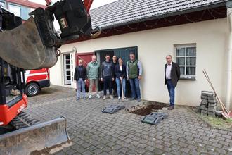 SINZIG. Mit dem Beginn der Fundamentuntersuchungen am Dorfgemeinschaftshaus Löhndorf hat am Donnerstag, 5. Juni 2025, die konkrete Bauphase für den geplanten Anbau begonnen. Bauamtsleiter Marco Knieper, Helmut Reuter aus dem Bereich Hochbau, Sinzigs Beigeordneter Volker Thormann in Vertretung von Bürgermeister Andreas Geron sowie der Löhndorfer Ortsvorsteher Volker Holy gaben damit gemeinsam mit der verantwortlichen Architektin Sarah Dünker-Wittland und den Mitarbeitern der Firmen Kastenholz und Adam-Krupp-Kleudgen den offiziellen Startschuss für das Bauprojekt. Der Neubau wird als Anbau an das alte Feuerwehrhaus auf dem Gelände zwischen Orsbeckstraße und Ulmenstraße realisiert. „Löhndorf kann sich auf ein zeitgemäßes und barrierefreies Dorfgemeinschaftshaus freuen, das die Ansprüche unterschiedlicher Nutzergruppen erfüllt“, so Beigeordneter Thormann.